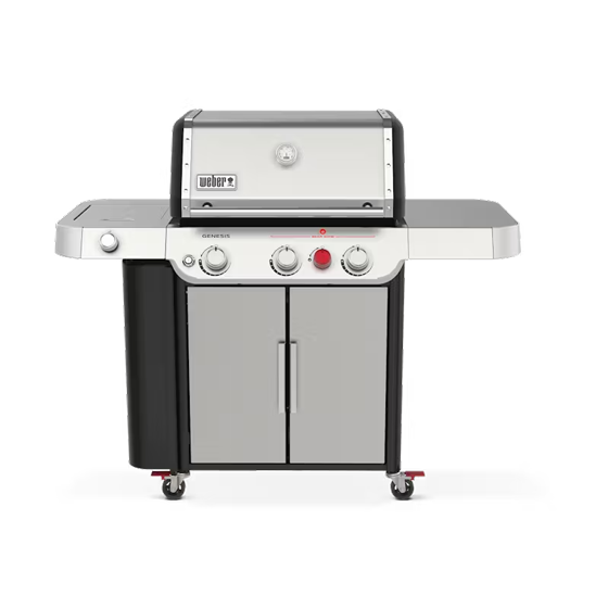The 3-burner, stainless-steel Genesis S-335 with side burner, delivers legendary Weber quality, performance and durability in a grill you can rely on to make outdoor cooking for family and friends easy and enjoyable. The PureBlu burner system sets this grill apart from the pack – featuring unique, tapered burner tubes that generate consistent pressure and flames and deliver even heat across the grilling surface. Flames are directed above the raised gas ports, while food debris falls below, minimizing clogging and ensuring the grill lights every time.